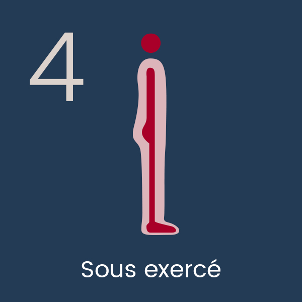 En manque d'exercice signifie que vous avez une quantité moyenne de graisse corporelle et un faible niveau de masse musculaire. Vous devriez commencer par gagner de la masse musculaire en pratiquant une activité physique régulière.