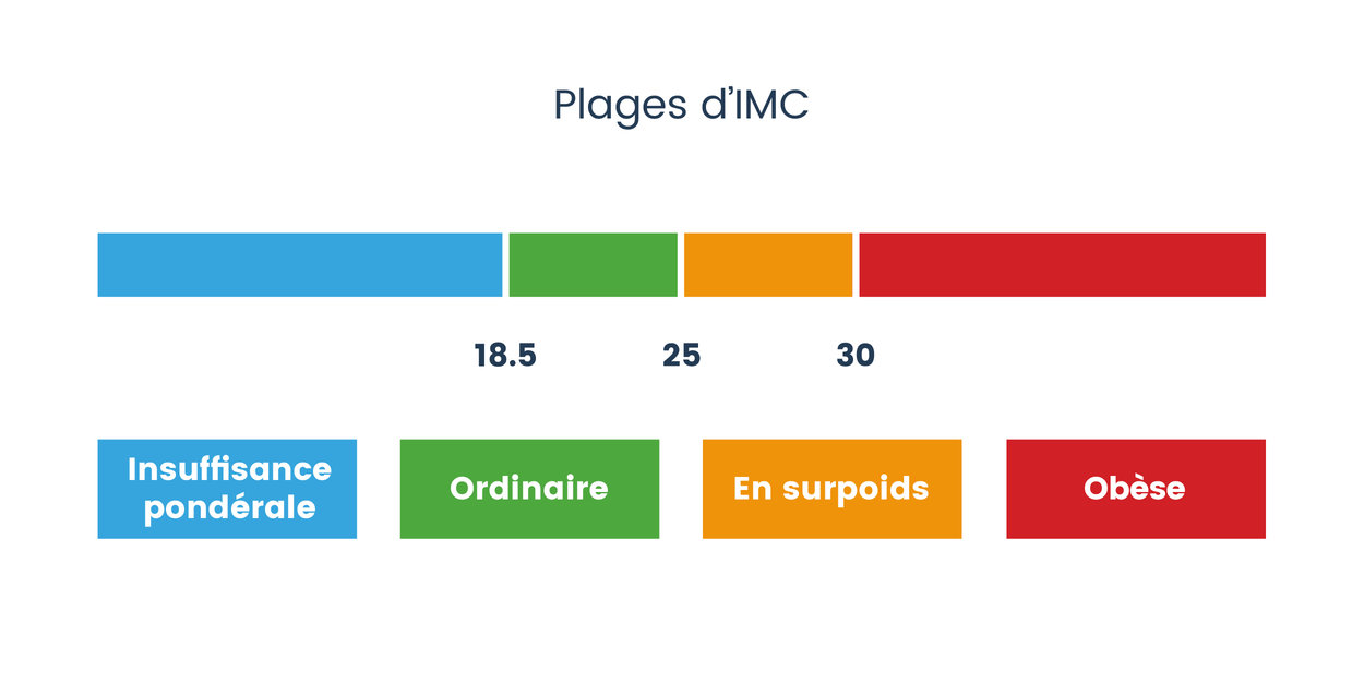L'Indice de Masse Corporelle (IMC) est la mesure la plus connue du niveau de graisse que contient votre corps. Facile à calculer, il suffit de diviser votre poids par le carré de votre taille. Le chiffre obtenu indique si vous avez un poids insuffisant, un poids normal, si vous êtes en surpoids ou si souffrez d'obésité.